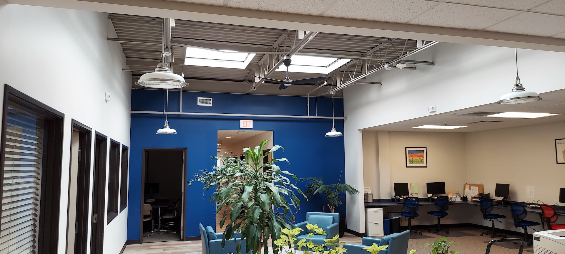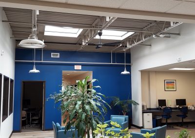 This former furniture store in downtown Ypsilanti had been vacant for so long that plants were starting to grow inside the building. It was purchased in 2017 for renovation by the MI Advocacy Program, an umbrella organization for several legal services nonprofits to house their growing staffs. The building now houses two floors of modern offices, as well as meeting spaces available to other public uses. Extensive repairs were done to the building, which was considered a contributor to the historic downtown area. New windows and skylights were added to bring natural light to the former retail areas.